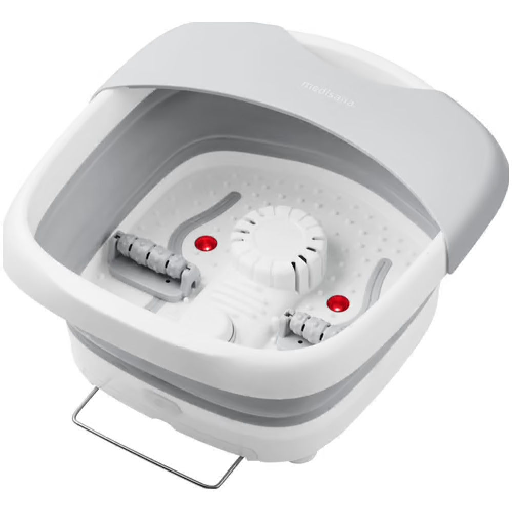 S pomočjo izdelka Medisana FS 886 naprava za masažo stopal lahko negujete svoja stopala v ogrevani peneči kopeli, medtem ko uživate v masaži. Dve masažni glavi na dnu kadi omogočata prijetno valjčno masažo, ki spodbuja pretok krvi in sprošča mišice. Poleg tega so priloženi 3 nastavki za pedikuro, ki jih lahko pritrdite na spodnji del. Tako lahko uživate v prijetnem pilingu stopal po peneči kopeli. Zaščita proti škropljenju preprečuje brizganje vode, kad pa lahko preprosto izpraznite z odtočnim nastavkom.
