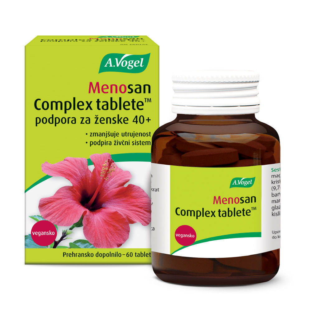 A. Vogel Menosan Complex je prehranski dodatek, oblikovan za podporo ženskam med menopavzo. Vsebuje kombinacijo naravnih sestavin, ki so tradicionalno uporabljane za lajšanje težav, povezanih s tem prehodnim obdobjem. Glavne sestavine vključujejo rastlinske izvlečke ter vitamine in minerale, ki prispevajo k splošnemu dobremu počutju. Uporaba dodatka je lahko del celovitega pristopa k zdravju, ki vključuje tudi ustrezno prehrano in telesno aktivnost, kar pripomore k boljšemu počutju med to pomembno življenjsko fazo.