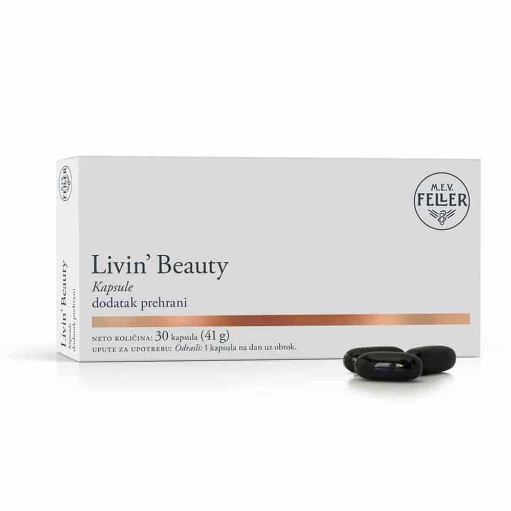 M.E.V. Feller Livin' Beauty My Beauty kapsule je edinstveno prehransko dopolnilo s sinergistično formulacijo za ohranjanje lepe kože, las in nohtov. Zajema lososovo olje, olivno in boragovo olje, ki so naravni viri nenasičenih maščobnih kislin. Prav tako vsebuje kolagen, glavno sestavino kožne povrhnjice in vitamin C, ki prispeva k proizvodnji kolagena za normalno delovanje kože. Podarite si lepoto!