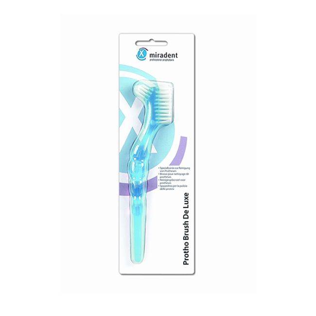 Miradent Protho Brush DeLuxe ščetka za protezo je specialna ščetka za čiščenje protezo, ki je inovativno oblikovana vse do najmanjše podrobnosti.