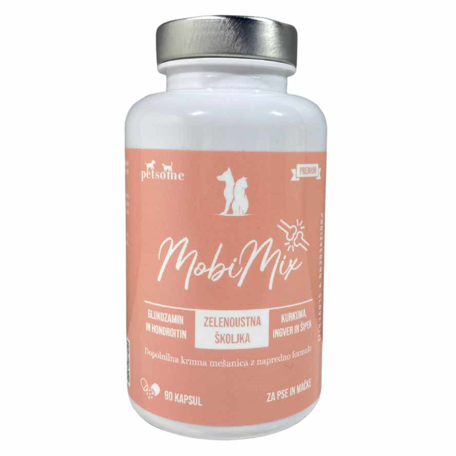 MobiMix je dopolnilna krmna mešanica v kapsulah namenjena psom in mačkam, ki je koristna in zagotavlja podporo sklepom, kostem in hrustancu. S tem se povečuje gibljivost in aktivni življenjski slog, dodatno pa poskrbi za dvig imunskega sistema. Sestavine so skrbno izbrane in so namenjene blaženju vnetnih procesov v sklepih ter lajšanju bolečin. Vsebuje glukozamin, liofiliziran prah zelenoustne školjke, hondroitin, vitamin C, izvleček kurkume, izvleček ingverjeve korenine in izvleček šipka. Je varen dodatek, brez stranskih učinkov, primeren za vse pasme in starosti.
