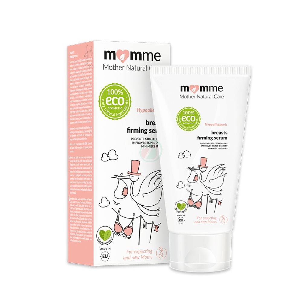 MomMe učvrščevalni serum je 100 % mešanica aktivnih ter rastlinskih izvlečkov, ki pripomorejo k intenzivni negi kože na predelu oprsja, da je ta v popolni kondiciji. Serum pripomore k regeneraciji poškodovane površine kože na način, da njeno strukturo zapolne in tako pripomore k hitri obnovi.