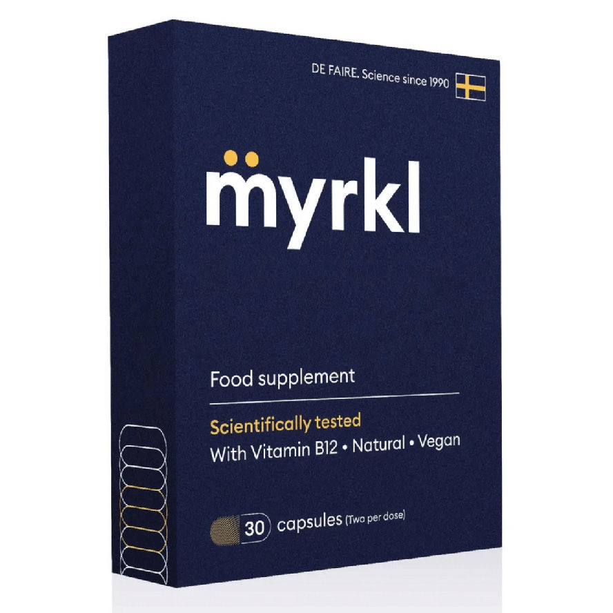 Myrkl žive kulture + B12 + L-cistein je prehransko dopolnilo, ki ga je leta 1990 izumil znanstvenik De Faire Medical na Švedskem in izpopolnil več kot 30 let raziskav in razvoja. Znanstvena formulacija izdelka z lastniško mešanico visoko učinkovitih bakterij (Bacillus Subtilis in Bacillus Coagulans), obogatena z L-cisteinom in vitaminom B12 je odlična sinergija mikrohranil, ki ugodno vplivajo na telo in splošno počutje. Izdelek je primeren tudi za osebe, ki se držijo veganske diete, saj ne vsebuje laktoze ali živalskih proizvodov. 100% naravni izdelek.