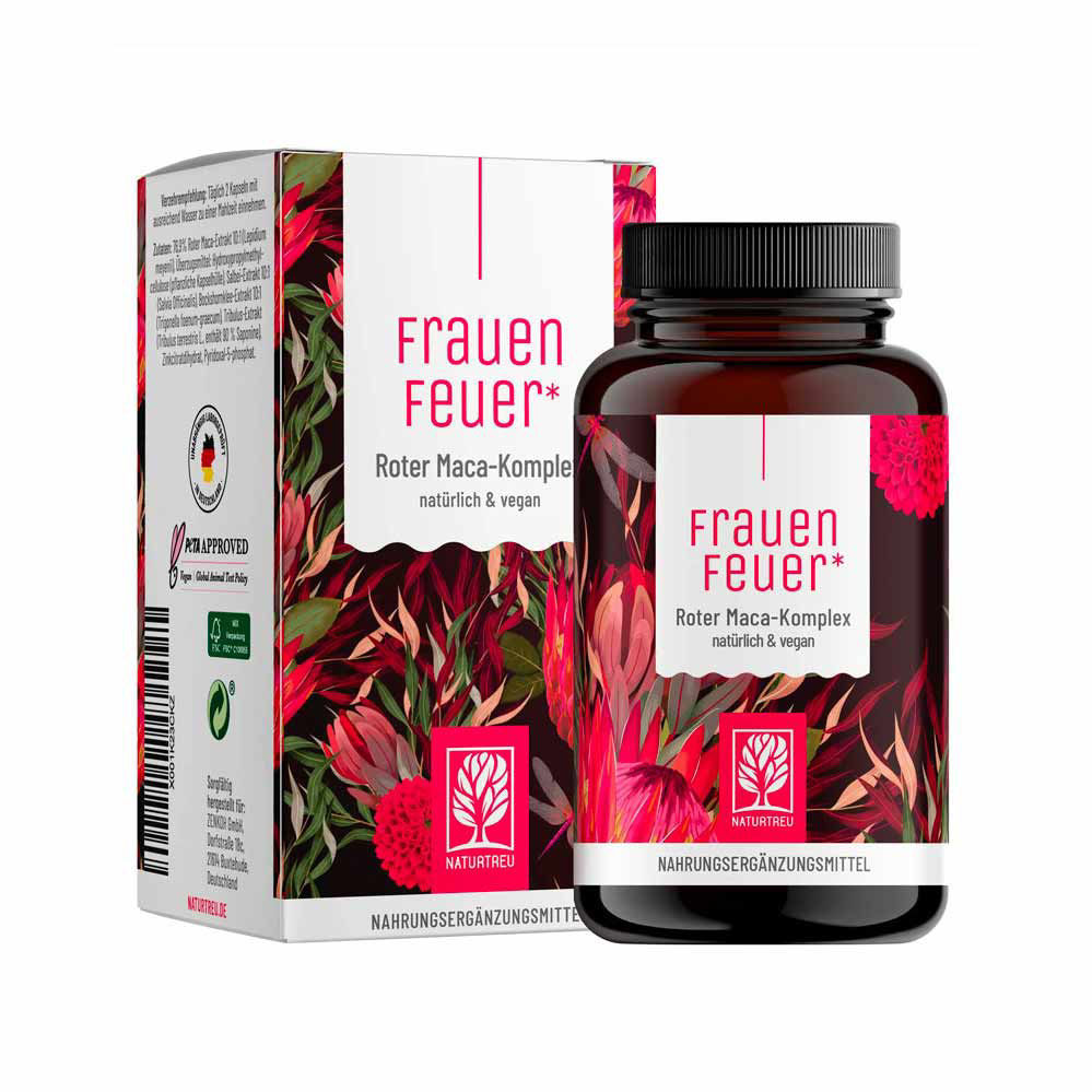 Naturtreu rdeča maca kompleks je visoko kakovostno prehransko dopolnilo, ki v sebi skriva bogato ter naravno formulacijo, ki vključuje moč rdeče mace ter drugih rastlinskih izvlečkov, vitamina B6 ter minerala cink. Zasnovano je posebej za ženske, ki želijo podpreti svojo strastno plat. Naturtreu rdeča maca kompleks je proizveden v Nemčiji po najvišjih standardih kakovosti. Izdelek je tudi preverjen v neodvisnem akreditiranem laboratoriju. V nasprotju s tabletami, rastlinske celulozne kapsule omogočajo polnitev brez uporabe dodatnih pomožnih snovi. Kapsule so posebej zasnovane za naravno razgradnjo, so lahko prebavljive in omogočajo boljšo absorpcijo hranil med prebavo.
