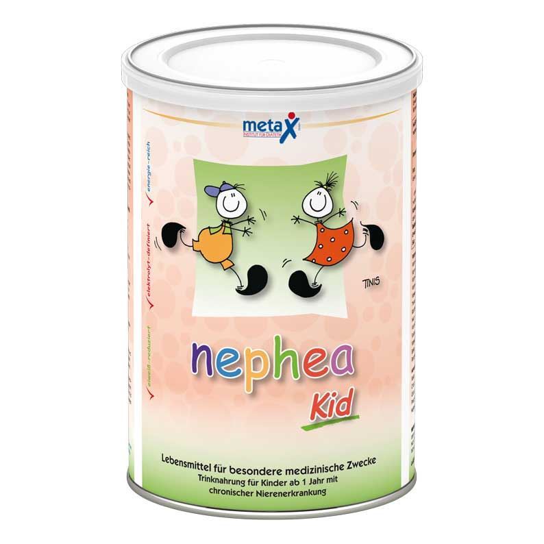 nepheaKid je peroralna in enteralna prehrana za prehransko obvladovanje pred in v času ledvične bolezni (pre-ESRD) ali drugih stanj kronične ledvične odpovedi (CRF), ko je potrebna proteinsko zmanjšana in elektrolitsko-prilagojena prehrana. nephea Kid je obogatena z topnimi vlakninami. nephea Kid je primerna za otroke od 1 leta starosti naprej.