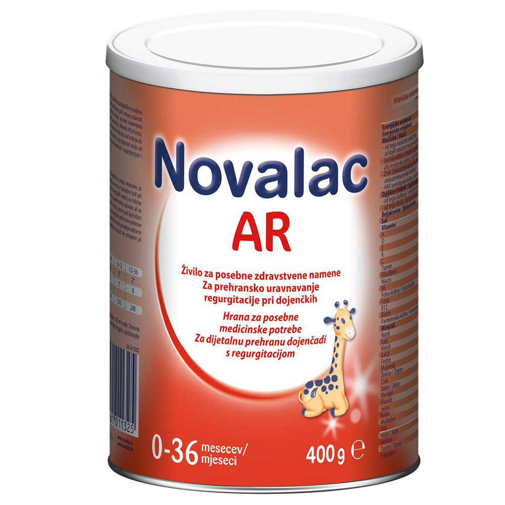 Novalac AR je namenjena dojenčkom s polivanjem. Vsebuje koruzni škrob. Hrana se zgosti v želodcu in prepreči uhajanje kisle želodčne vsebine skozi usta.