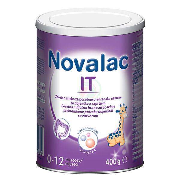 Pri dojenčkih z zaprtjem je v prehrani priporočljiva uporaba specialnega mleka Novalac IT, ki vsebuje povečano količino laktoze in magnezija. Laktoza je prebiotik- hrana za bifidobakterije, kar pospeši njihovo razmnoževanje in s tem volumen blata. Laktoza in magnezij sta osmozna laksativa, ki pritegneta vodo v debelo črevo in s tem zmehčata blato in tako je omogočeno lažje odvajanje blata.