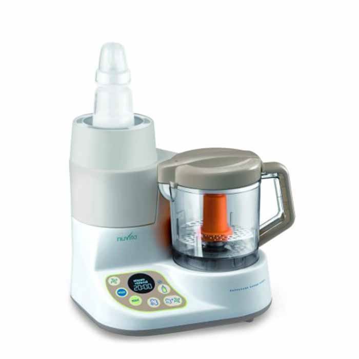 Zahvaljujoč temu praktičnemu aparatu, je priprava hrane zdaj preprostejša in hitrejša, najpomembnejše pa je, da je hrana, pripravljena na ta način, veliko bolj zdrava. Nuvita Pappasana Vapor Combo 2 je nov aparat v ponudbi sodobnih in funkcionalnih aparatov za pripravo hrane za malčke.Mini procesor hrane in grelec stekleničke v enem. 5 v 1 kuha na paro, seklja, meša in homogenizira, odmrzuje ter segreva otroške stekleničke in kozarce.Digitalni prikazovalnik vam omogoča preprosto izbiro vrste programa, ki ga potrebujete, in nastavitev časa kuhanja od 5 do 30 minut, odvisno od hrane, ki jo želite kuhati. Primeren je za: sadje, zelenjavo, meso in ribe.