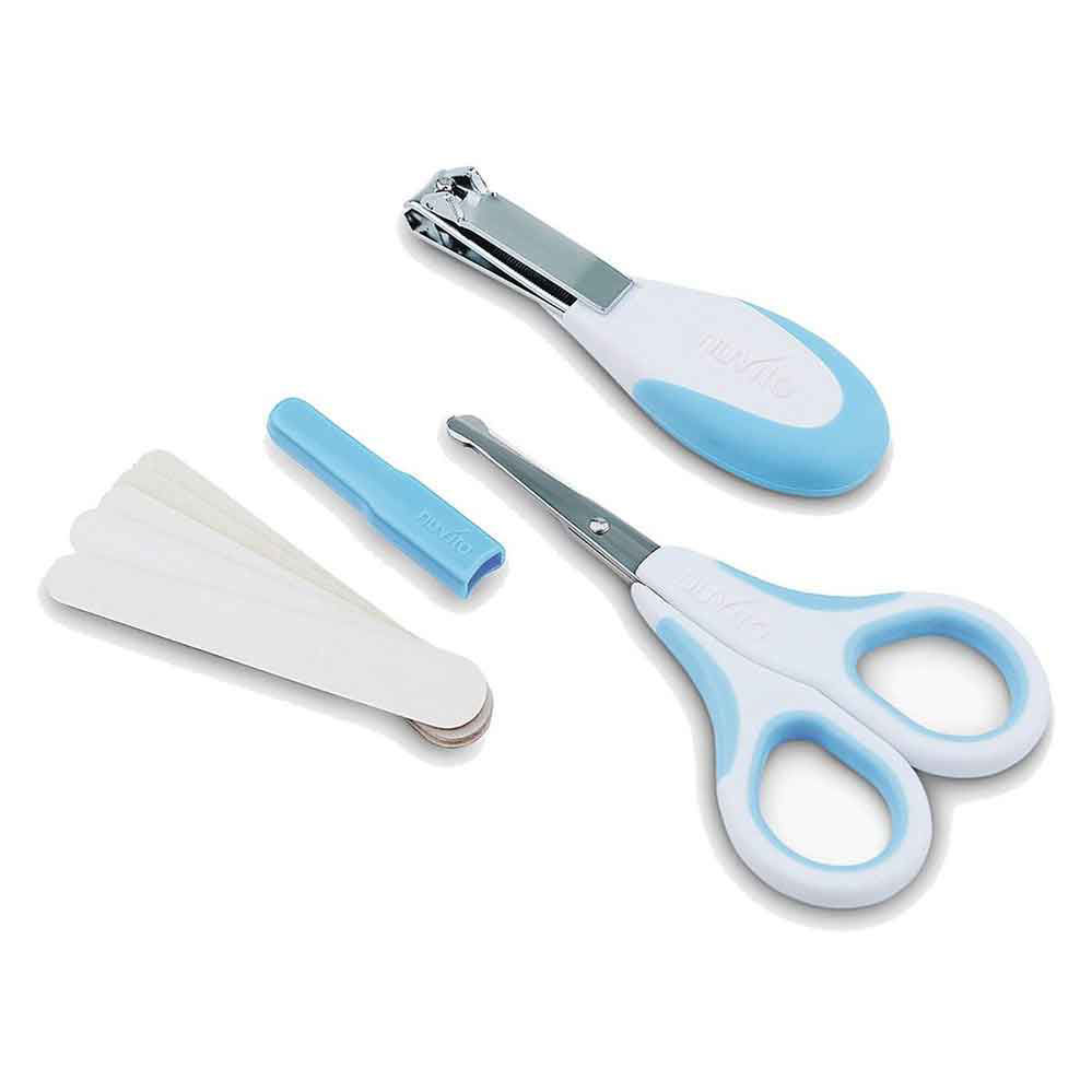 V setu so vam na voljo škarjice, ki so izdelane iz nerjavečega jekla. Vrh je dobro zaščiten, da ne morete zbosti otroka. Nuvita set vsebuje tudi ergonomsko ščipalko za nohte, s katero boste lahko precizno skrajšali otroške nohtke. Za izredno natančno oblikovanje pa lahko uporabite tudi pet priloženih pilic za nohte. Set za nego nohtov lahko izberete v modri, roza ali zeleni barvi.