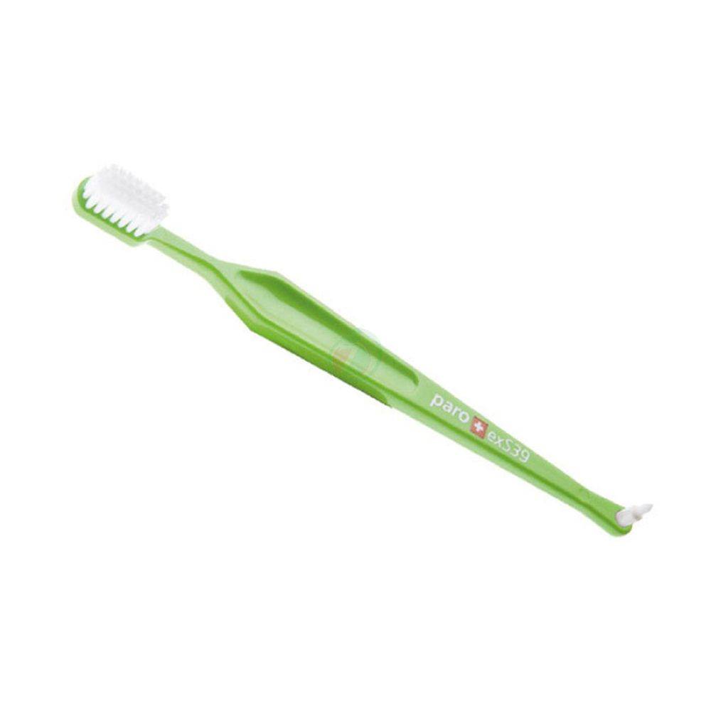 Paro exS39 zobna ščetka je patentirana posebej za tiste, ki uporabljate tudi prirične medzobne ščetke. Tako po normalnem ščetkanju na konec ročaja ščetke pritrdite medzobno ščetko Paro Isola-F ali Paro Isola-3 Stra tter ščetkajte in poskrbite še za higieno medzobnih prostorov.