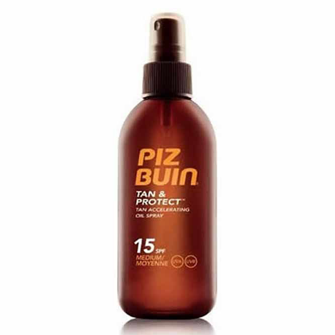 Piz Buin Tan & Protect olje za zaščito pred soncem ZF 15 omogoča hitrejšo porjavitev kože ter ščiti vašo kožo pred opeklinami, hkrati pa ji daje čudovit lesk. Vsebuje vitamin E, ki ščiti in neguje. Hkrati omogoča hidratacijo in ji zagotavlja čudovito in dolgo obstojno porjavitev. Piz Buin Tan & Protect olje za zaščito pred soncem ZF 15 pomaga preprečevati prezgodnje staranje kože zaradi sonca. Piz Buin Instant Glow sprej za zaščito pred soncem ZF 30 zagotavlja dolgotrajno vlaženje in zdrav lesk, ki vašo polt naredi še posebej zapeljivo.