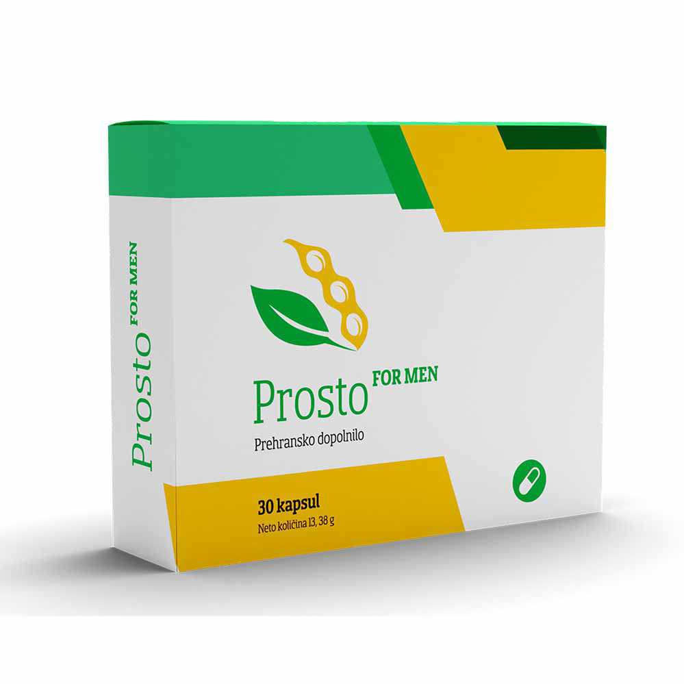 Prosto For Men - podpora za prostato je naravno prehransko dopolnilo za moške. Zajema izjemno formulacija z naravnimi rastlinskimi izvlečki, kot sta zeleni čaj in soja. S starostjo se prostata povečuje, hipertrofira, ovira uriniranje, povzroča bolečine intežave ter je dejavnik tveganja za raka na prostati. Bolezni prostate so razmeroma pogoste, saj ima lahko 40 % moških med 50. in 60. letom in 90 % med 80. in 90. letom simptome, ki so posledica povečane prostate. 1 pakiranje izdelka Prosto For Men - podpora za prostato zadostuje za 1 mesec uporabe.