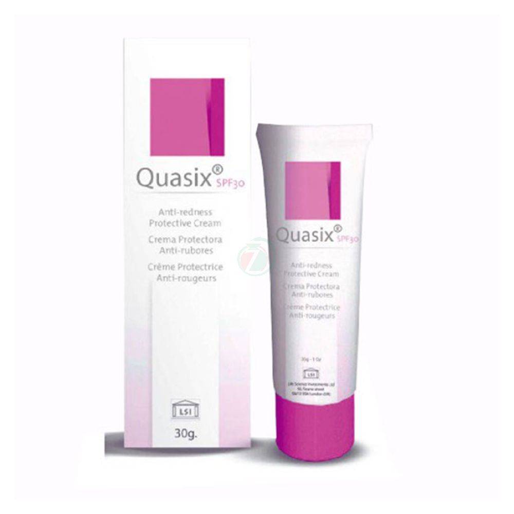 Quasix zaščitna krema z zaščitnim faktorjem 30 deluje intenzivno proti rdečici ter je kozmetičen izdelek namenjen vsem tipom rdečične kože, ki je trajno razpršena ter zelo pogosto vidna na predelih obraza.