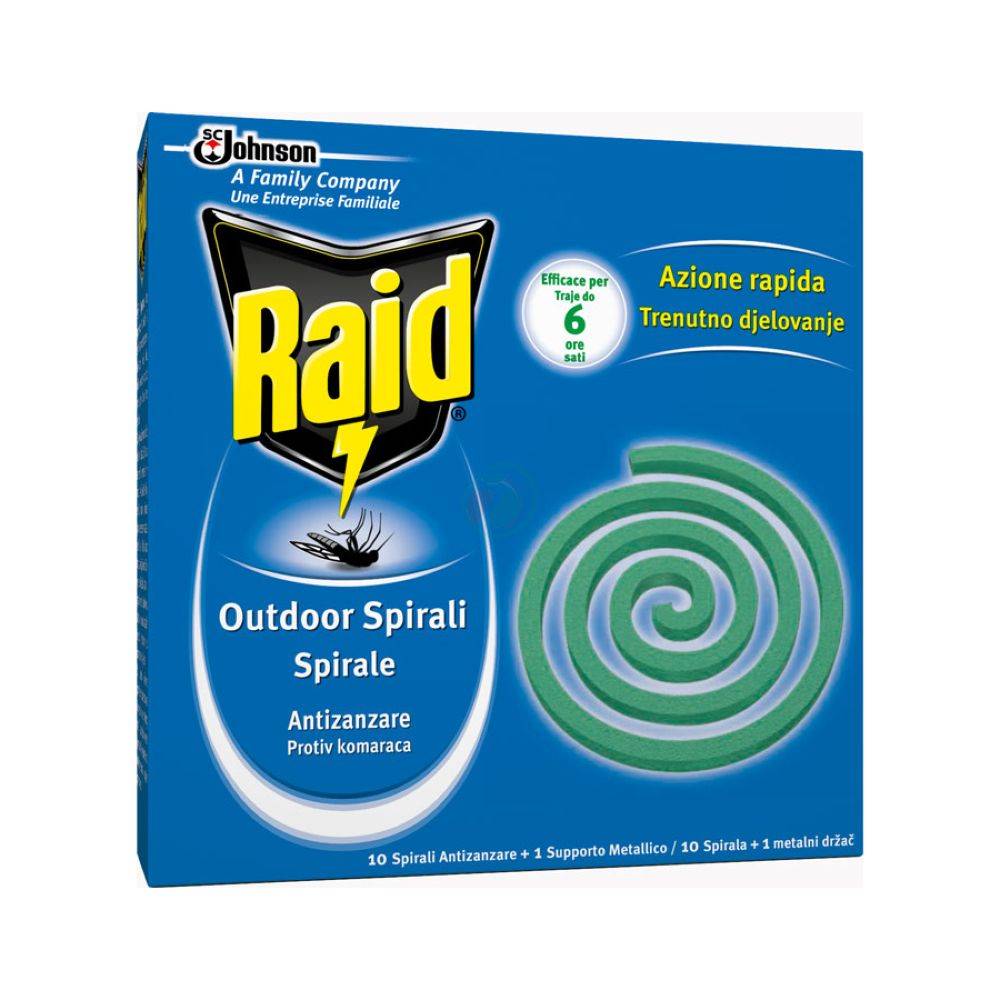 Raid spirala proti komarjem učinkovito deluje predvsem v odprtih prostorih, kot so vrtovi, čolne, kampiranje, terasa.