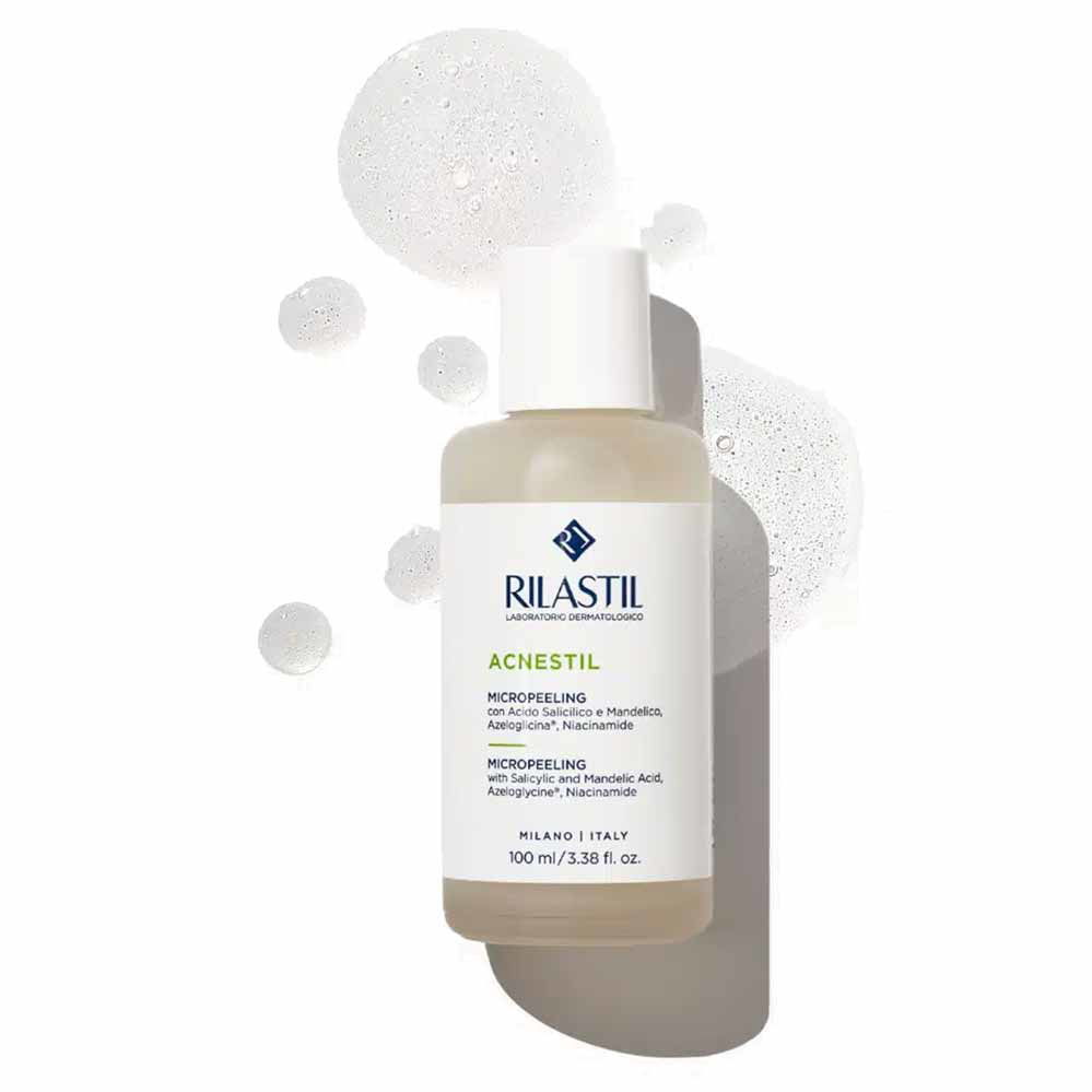 Rilastil Acnestil mikropiling za aknasto kožo je primeren za nečisto kožo in kot pomoč pri negi aknaste kože pri odraslih in mladostnikih. Deluje na normalizacijo sebuma, pospešuje odstranjevanje ogrcev ter obnovo celic in zmanjšuje akne (posttravmatske hiperpigmentacije in eriteme). Rilastil Acnestil mikropiling za aknasto kožo prav tako poveča absorpcijo nadaljnjih lokalnih tretmajev, kot so aktivne sestavine v serumih ali kremah. Formulirano brez alkohola. Rezultati že po 3 dneh uporabe.