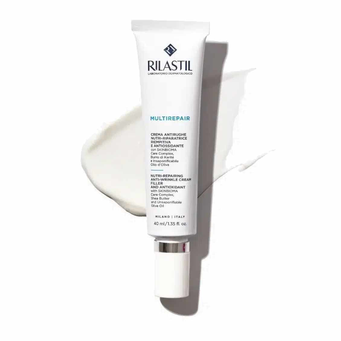 Rilastil Multirepair hranilna krema za obraz proti gubam pomaga zapolniti gubice in nasprotovati procesu staranja obraza. Formulirano s Skinbioma care kompleksom, ki vsebuje prebiotik oligosaharid α-glukana in postbiotike Lactobacillus ferment, ektoin, hidrolizirane beljakovine iz kvasa. Te aktivne učinkovine sinergistično spodbujajo obnovo mikrobiote kože, jo krepijo, ščitijo in uravnavajo njeno pravilno ravnovesje. S tem spodbujajo samooobrambo kožne bariere, kar pripomore k obnovljeni in lepi koži.