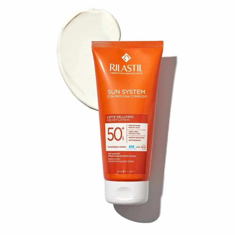 Rilastil Sun System Velvet losjon za zaščito pred soncem ZF 30 je posebej zasnovan za normalno, suho in prav tako občutljivo kožo. Primeren je za uporabo na obrazu in telesu, hkrati pa je izjemno odporen na vodo in znoj. Zajema hipoalergeno sestavo, ki zmanjšuje možnost alergijskih reakcij, vsebuje pa tudi poseben kompleks Pro-DNA za povečanje elastičnosti. Zagotavlja širokospektralno zaščito pred UVB-UVA sevanjem, preprečuje nastanek sončnih opeklin in temnih madežev ter hkrati ščiti naravno lepoto kože.