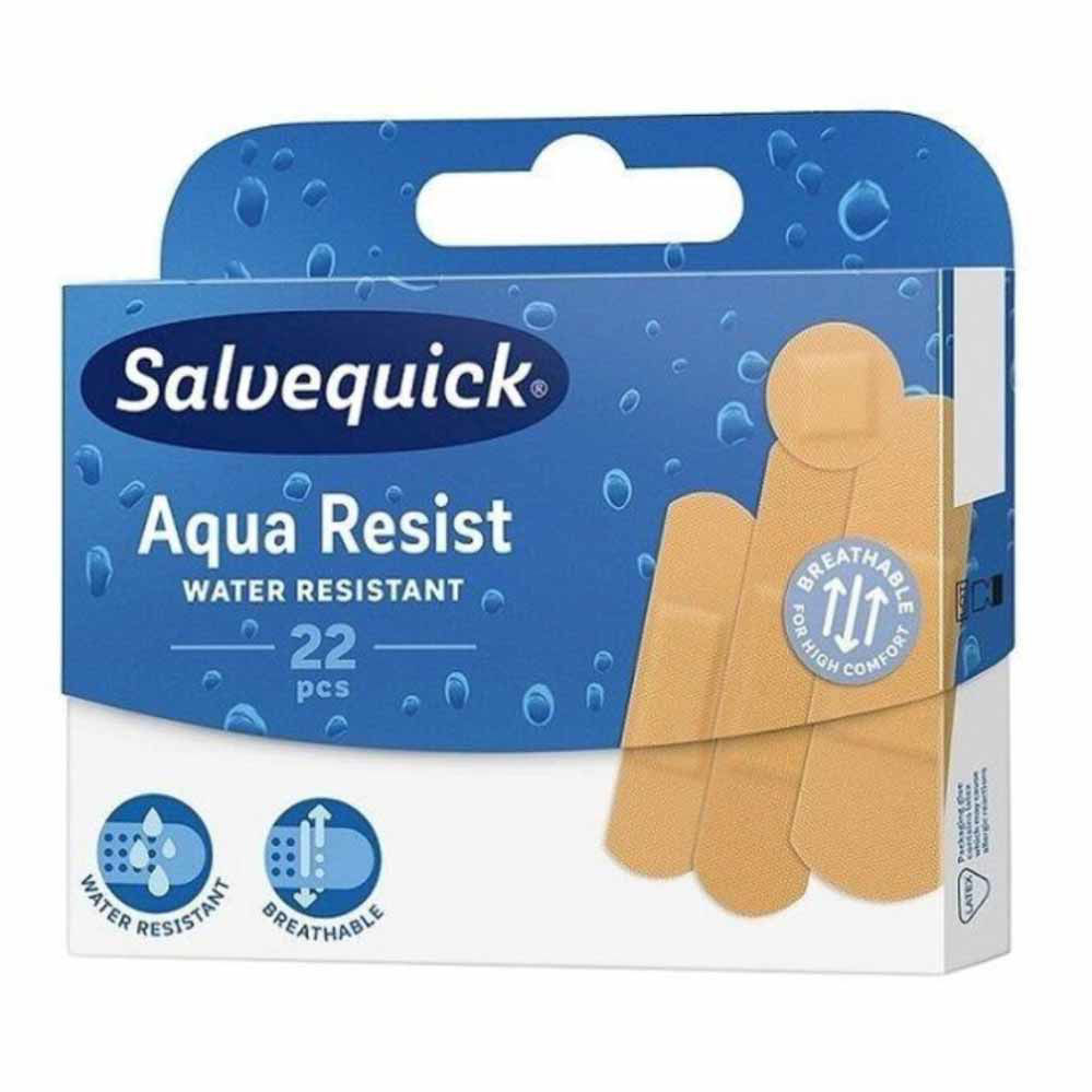 Salvequick Aqua Resist vodoodporni obliži v 4 različnih oblikah in velikostih so ustvarjeni iz prožnega materiala z močnim oprijemom ter so primerni za komolce, kolena, sklepe in predele z veliko gibanja. Salvequick Aqua Resist obliži so oblikovani z okroglimi robovi, za boljši oprijem in so izdelani iz 70 % obnovljivih materialov. Salvequick Aqua Resist obliži ščitijo pred vodo, umazanijo in bakterijami. Funkcionalne prednosti so hitro celjenje, preprečevanje brazgotin ter lajšanje bolečine. Imajo najboljši oprijem na trgu.