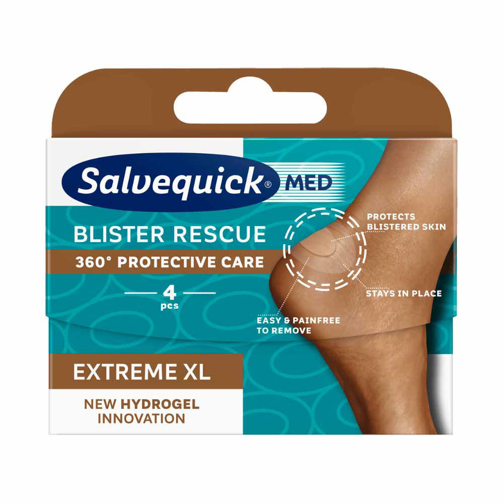 Salvequick Med Blister Rescue Extreme obliž je najprimernejši v primeru, ko se razvije žep z žuljem in je nedotaknjen, raztrgan ali odstranjen. Hidrogelna blazinica zagotavlja takojšnjo blažilno pregrado, ki razbremeni pritisk in zmanjša tveganje za dodatne poškodbe. Obloge tudi ščitijo žulj z zmanjšanjem trenja na tem območju. Nova inovativna zasnova z več blazinicami iz hidrogela ostane dobro na mestu, zahvaljujoč močnemu oprijemu robov PU-folije. Prozorni film se diskretno prilagaja barvi kože.