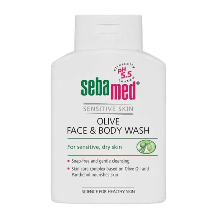 Sebamed gel za umivanje obraza in telesa z dodatkom olivnega olja - ultra negovalna kombinacija za vse kožne tipe.