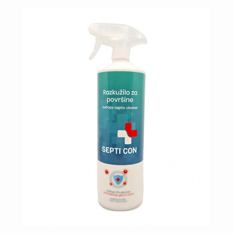 Septi Con razkužilo za površine je odlična rešitev za primere, ko je treba enostavno dezinficirati več trdih površin. V eni embalaži je kar 1L sredstva za dezinfekcijo. Embalaža pa ima nameščeno pumpico, ki pomembno olajša uporabo, saj zagotovi, da se razkužilo enakomerno razporedi po površini, ki bi jo želeli dezinficirati.