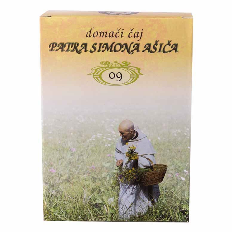Simon Ašič ŽoSIT čaj 09 za žolč je čaj, ki je pripravljen z mešanjem skrbno izbranih zelišč po navodilih patra Simona Ašiča