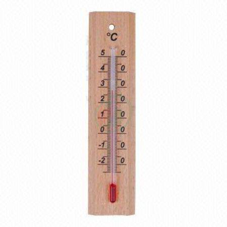 Termometer za merjenje temperature zraka. Lahko se uporablja zunaj ali znotraj. Izvedba na lesu je bolj primerna za uporabo v prostorih z manjšo vlažnostjo. Območje merjenja od -40 do +50 stopinj C.