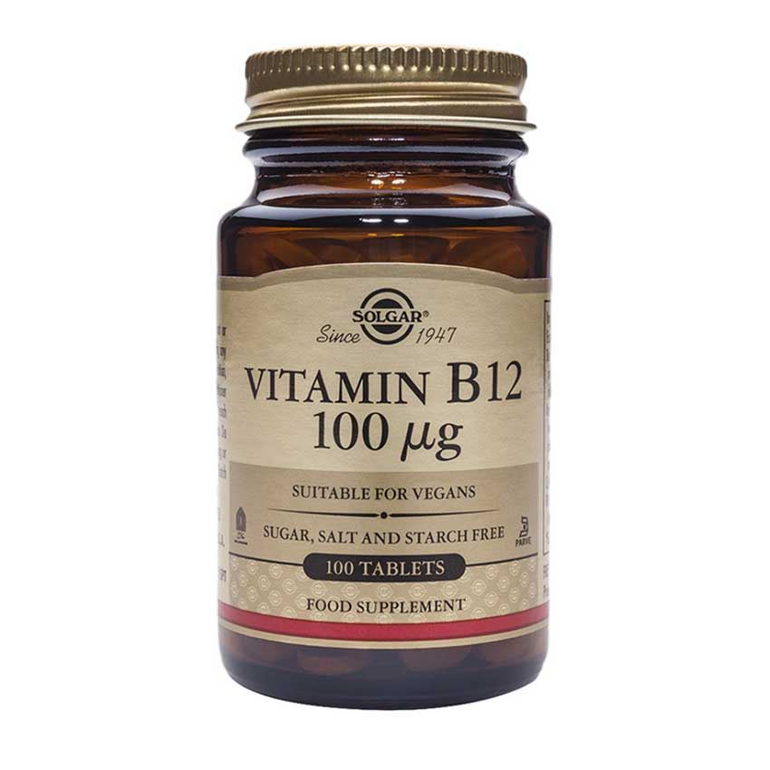 Solgar Vitamin B12 je na voljo v koncentracij 100 μg po posamični tableti, B12 vitamin pa je prisoten v obliki cianokobalamina.