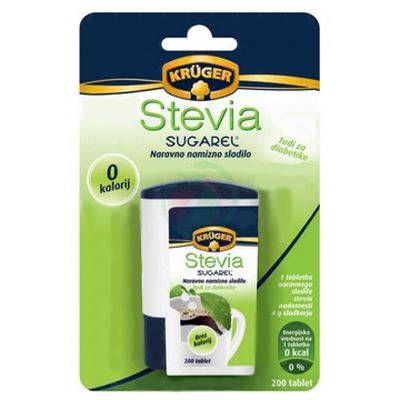 Stevia Sugarel namizno sladilo s steviol glikozidi iz izvlečka listov Stevia rebaudiana v tabletkah brez kalorij je odlično nadomestilo za sladkor in umetna sladila.