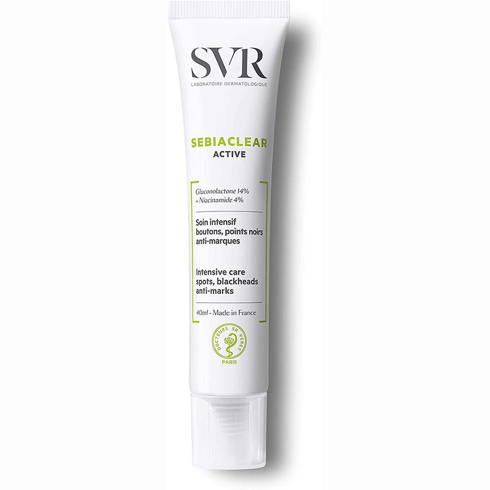 V SVR Sebiaclear Active Gel-u je prisotna visoka koncentracija dermatoloških sestavin. Posebna kombinacija 14% glukonolaktona in salicilna kislina ter matirajoči agens učinkovito prečiščujejo teksturo kože ter odmašuje zamašene pore. Hkrati pa ta kombinacija omejuje nastajanje aken in regulira izločanje sebuma. V sestavi pa je še 4% niacinamid, ki učinkovito upočasnjuje razmnoževanje bakterij in preprečuje nastanek novih aken.