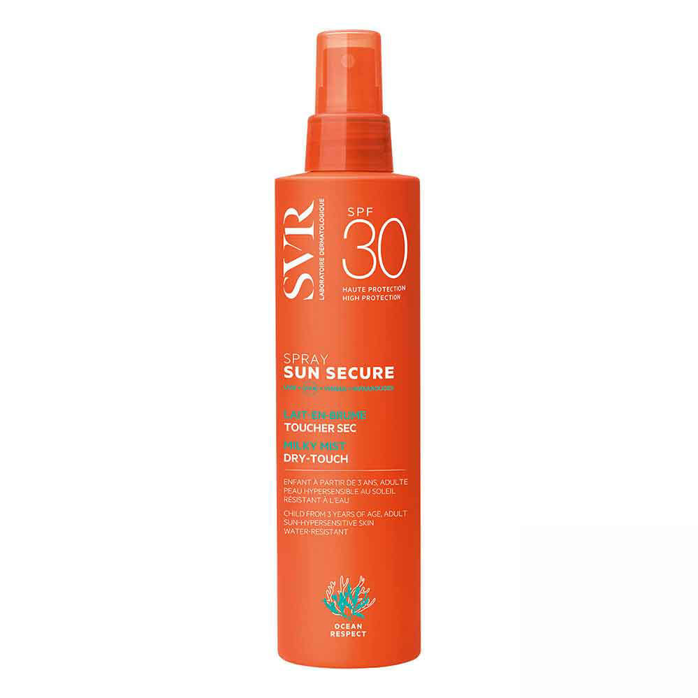 SVR Sun Secure sprej ZF 30 ali ZF 50+ nudi visoko zaščito pred soncem. Ponaša se z izjemno preprostim nanašanjem in nevidnim zaključkom na koži. Na voljo s faktorjem 30 ali 50 +. Primerno za obraz in telo.