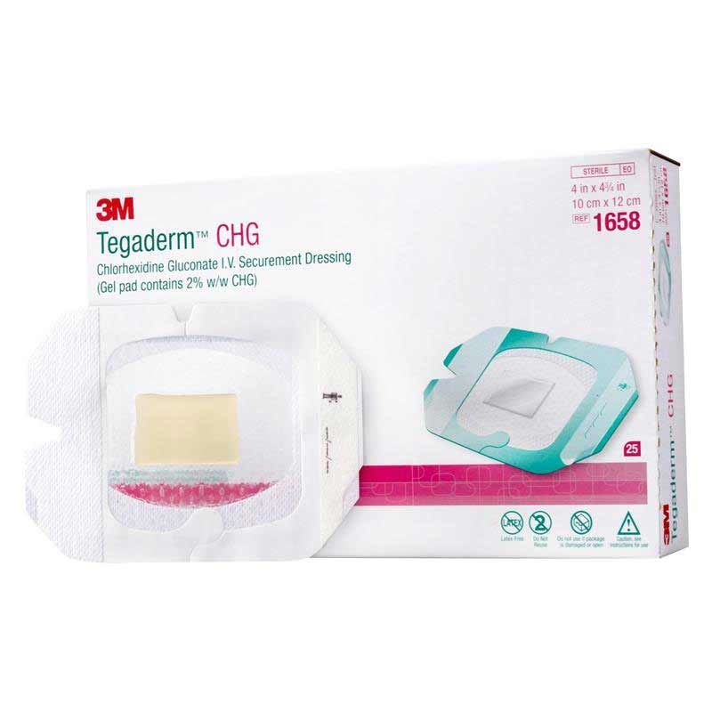 Tegaderm I.V. film s CHG blazinico - CHG je oznaka za za Chlorhexidin Glukonat. Izdelek je primeren za različne vrste katetrov, od arterijskih, dializnih, epiduranih katetrov itd.