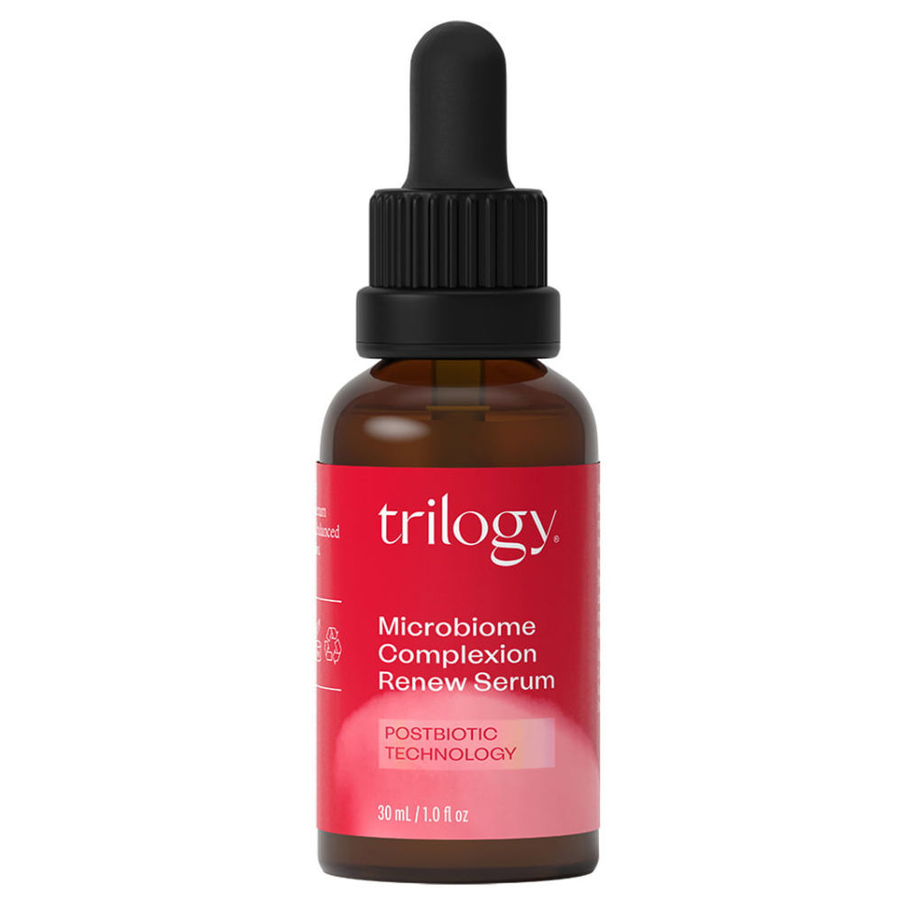 Trilogy Microbiome Complexion Renew serum za obraz je zasnovan za podporo zdravega mikrobioma kože in izboljšanje njenega videza. Glavne sestavine pomagajo uravnavati kožno mikrofloro, ekološko šipkovo olje pa je bogato z esencialnimi maščobnimi kislinami in antioksidanti. Te sestavine učinkovito nahranijo kožo, povečajo njeno elastičnost in izboljšajo njen tonus. Serum ima lahko teksturo, ki se hitro vpije in ne pušča mastnega občutka. Po uporabi koža postane bolj gladka, hidrirana in zdravega videza.