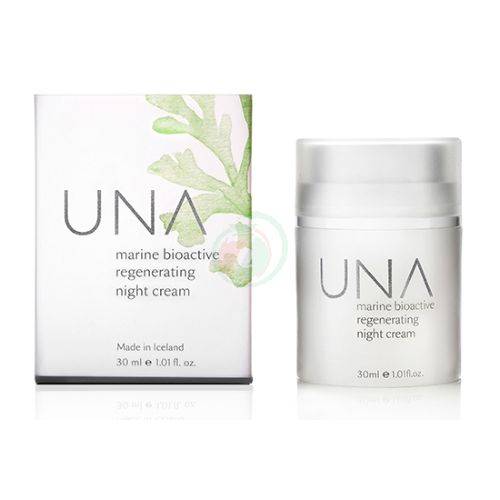 UNA regenerativna nočna krema iz bioaktivni sestavin islandskih morskih alg. Bioaktivna sestavina, ki jo vsebujejo morske alge je proizvedena po posebnem tehnološkem postopku, ki zagotavlja njeno optimalno delovanje in učinkovistost. Morje in znanost ohranjata naravno lepoto vaše kože. Močna krema, ki globoko neguje in obnavlja kožo ponoči, preprečuje in zmanjšuje gube. Krema stimulira, neguje in vlaži kožo, ki ji da svež videz.