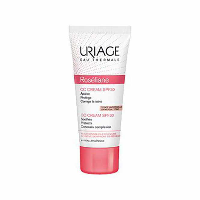 Uriage Roseliane CC obarvana krema za občutljivo kožo z ZF 30 je večnamenski izdelek, ki v eni sami potezi poenoti in posvetli polt, prikrije rdečico, zagotavlja dolgotrajno vlaženje in nudi zaščito pred UVA in UVB sevanjem. Formulacija izdelka vključuje mineralne pigmente, ki takoj popravijo rdečico in dolgočasno ali neenakomerno polt, ter kompleks TLR2-Regul, ki skupaj z izvlečkom ginsenga in rdečih alg uravnava kožno bariero in krepi kapilare.