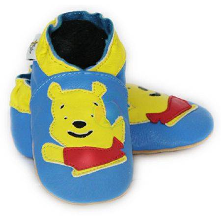 Usnjeni otroški copatki z vzorcem - medvedek Pu