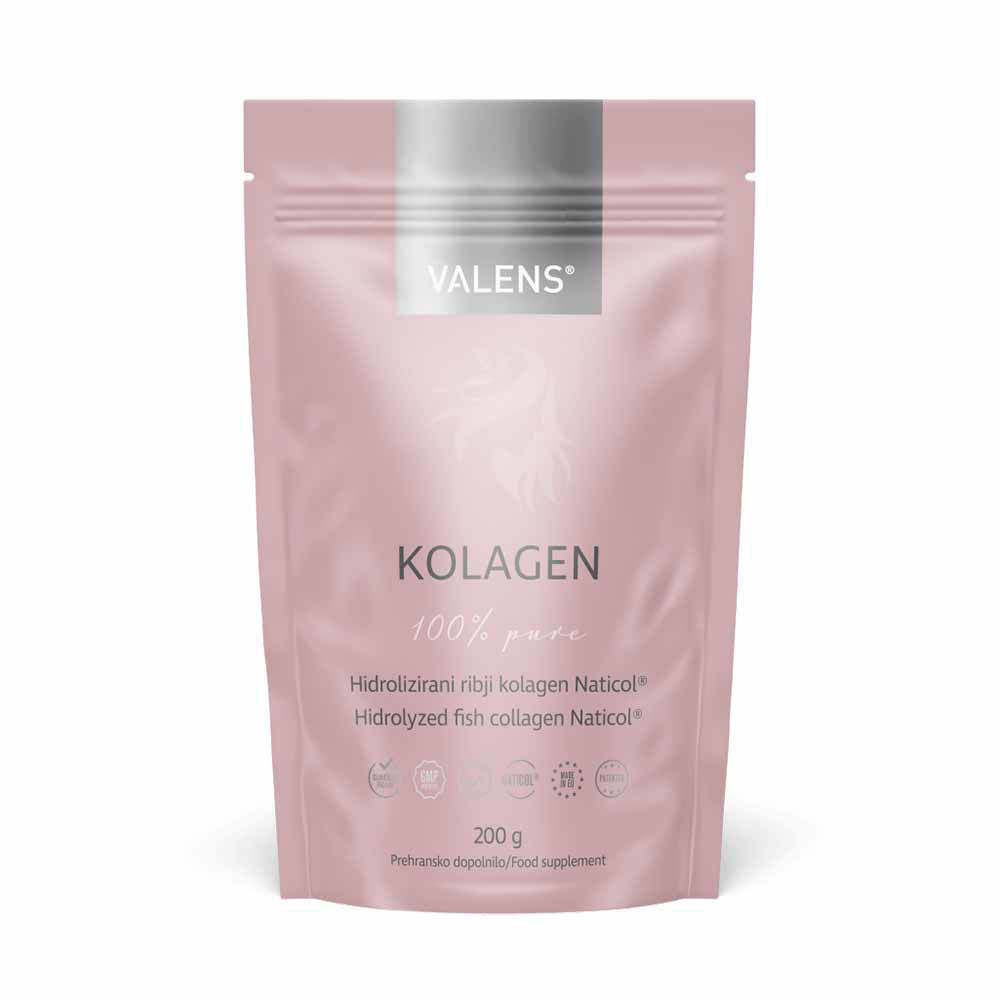 Kolagen je v našem telesu naravno prisoten. To je protein oziroma beljakovina, ki je v večjih količinah pristna v koži, kosteh, hrustancu in ostalih vezivnih tkivih. Naše telo do 20. oziroma 25. leta brez težav kolagen proizvaja samostojno. Potem pa prične ta produkcija pešati. To lahko opazite na oslabljenih laseh kot tudi težavni koži in lomljivih nohtih. Takrat je čas, da telesu pričnemo dodajati kolagen v obliki prehranskega dopolnila. In dobra izbira je tudi Valens kolagen v prahu.
