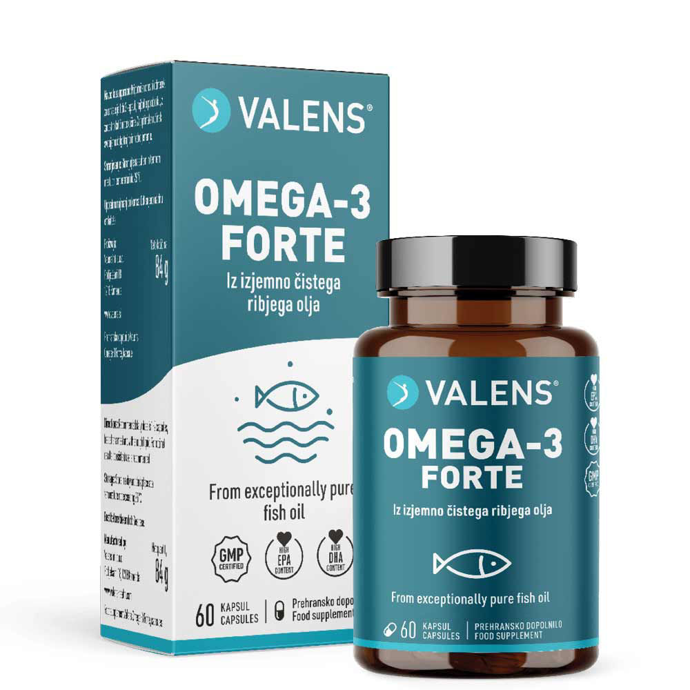 Dodatno uživanje omega 3 maščobnih kislin je za naš organizem skoraj nujno. Omega 3 maščobne kisline so namreč esencialne maščobne kisline, ki jih telo samostojno ne more proizvesti. Zadostno količino lahko telesu zagotovimo preko ustreznih živil, vendar to uspeva le nekaterim. Inovativno prehransko dopolnilo Valens Omega-3 Forte nam omogoča enostavno vsakodnevno zaužitje zadostne količine omega 3 maščobnih kislin. Poudariti je potrebno tudi to, da prehransko dopolnilo Valens omega-3 Forte vsebuje olje rib, ki so bile ulovljene na trajnostni način.