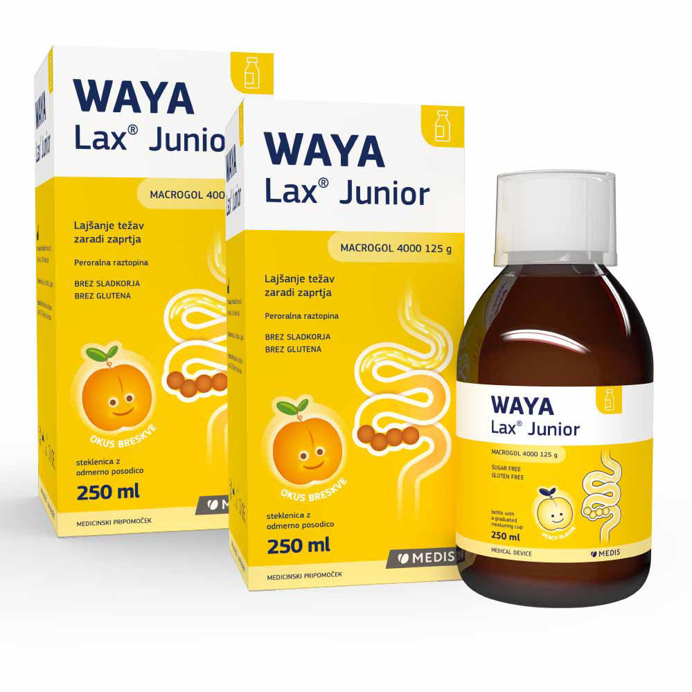 Peroralna raztopina Waya Lax je medicinski pripomoček na osnovi makrogola 4000, ki nežno in učinkovito odpravi zaprtje. Nov izdelek Waya Lax z osmotskim mehanizmom ureja delovanje črevesja in lajša težave zaradi zaprtja. Aktivna sestavina makrogol 4000 v izdelku zaradi afinitete do vode zmehča blato in olajša njegovo izločanje. Na voljo je v vrečicah za direktno zaužitje, kar omogoča enostavno odmerjanje.