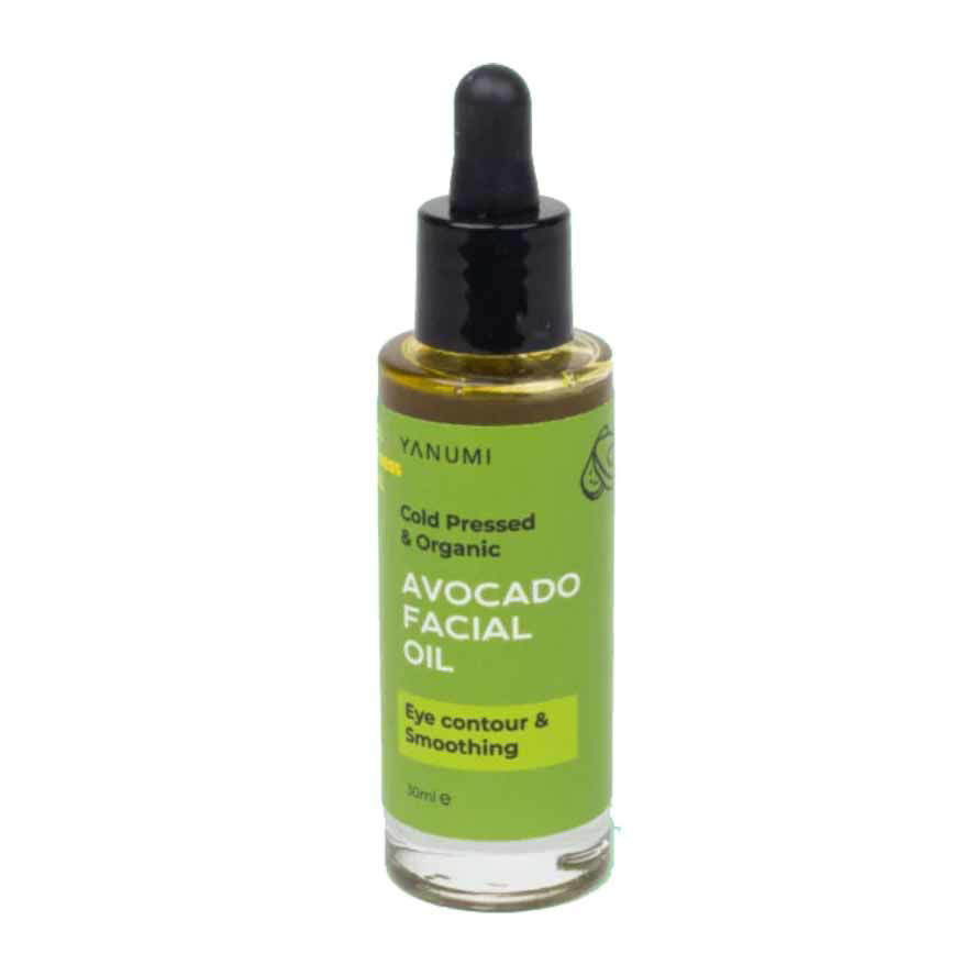 Lahko, negovalno olje Yanumi je bogato z vitaminom D in se hitro vpije v kožo ter ščiti pred izgubo vlage, uravnava nastajanje maščobe v koži, preprečuje akne, zmanjšuje gube in daje koži sijoč sijaj. Blagodejno vpliva na kožo, ki je pod stresom in neguje razdraženo ter pordelo kožo. Hranljivo avokadovo olje, bogato z maščobnimi kislinami in vitamini, pomaga povrniti vlago v kožo in neguje kožno bariero. Olje je izjemno bogato z vitamini A, B1, B2, D, E in maščobnimi kislinami. Za mehko in gladko kožo.