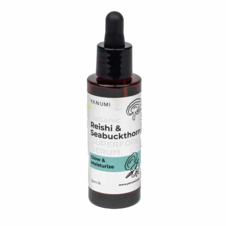 Yanumi Superfood serum z reishi gobo in rakitovcem pomaga pri zmanjševanju pojava površinskih linij in gub, pri glajenju neenakomerne teksture kože ter pri zmanjševanju znakov utrujenosti in stresa, kožo pa hkrati varuje pred okoljskim onesnaženjem. Kožo pomaga navlažiti in ustvari bolj spočit videz, z zmanjšanimi drobnimi gubicami in bolj sijočo poltjo. Yanumi Superfood serum z reishi gobo in rakitovcem je tvoj naravni pomočnik, ki ga je dobro imeti ves čas pri roki in te ne bo pustil na cedilu.