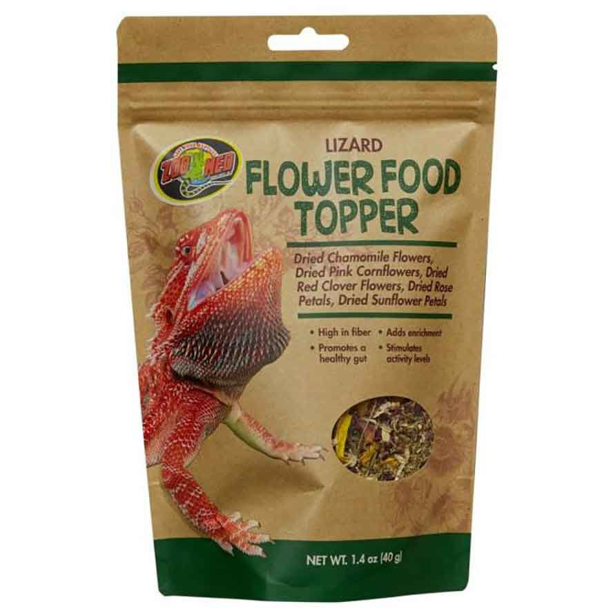 Mnoge vrste kuščarjev uživajo v rožah, ki predstavljajo naravni prehranski dodatek pri mnogih rastlinojedih in vsejedih kuščarjih. Zoo Med Flower Food Topper za kuščarje je prehranski dodatek, ki ga lahko uporabite tudi pri iguanih in podobnih živalih. S pomočjo prehranskega dodatka boste lahko v hrano doprinesli dovolj vlaknin in s tem pomagate obogatiti njihovo rutino.